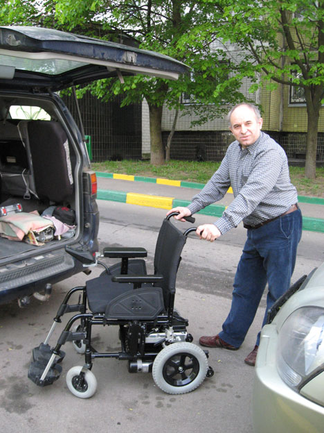 Недавно у него умерла жена, и он остался совсем один в своей квартире. У нас давно было желание подарить ему коляску с электрическим приводом, поскольку у него, к тому же, болит правая рука, и он с большим трудом передвигается по квартире на обычной коляске.