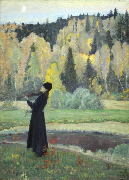 Нестеров в своей картине «Элегия» изображает слепого музыканта, который находит свет и радость в своем искусстве. Очень лиричная и умиротворяющая картина, на которой изображен слепой музыкант, играющий на скрипке не для людей, а для Бога, к которому устремлён его взор.