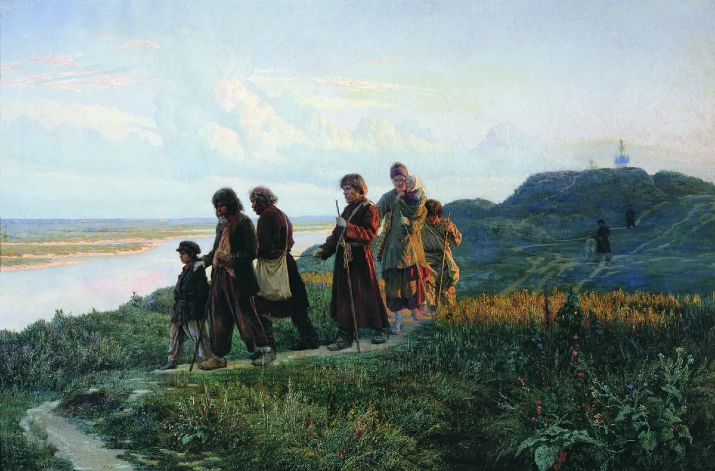 Иван Ерменев в своем произведении «Поющие слепцы» изображает группу слепых музыкантов, чьи голоса и музыка становятся символом силы человеческого духа и способности жить полной жизнью, несмотря на физические ограничения. Несчастные калеки поют, развлекая народ, чтобы заработать себе на пропитание.